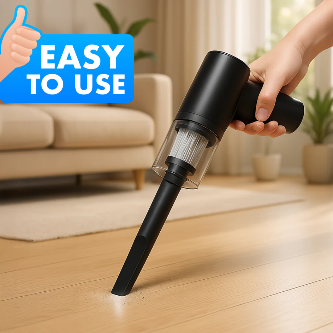This 2-in-1 device combines strong suction + blower function, making it perfect for dust removal, pet hair, food crumbs, sand, and even tiny liquid spills.